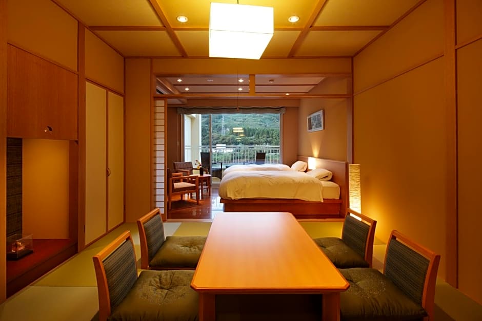 At Satorikan, there's no shortage of unique room options that cater to every traveler’s taste and needs! Choose from charming Japanese-style accommodations, with cozy futon mats perfectly nestled on tatami floors for an authentic experience. Imagine drifting off to sleep beneath delicate shoji screens, only to wake up to magnificent views of the nearby mountains or rivers. For those who prefer a more laid-back experience, the comfort of a room with twin beds awaits. Whether you’re traveling as a couple or as part of a big family gathering, Satorikan offers enough space to ensure that everyone feels right at home.